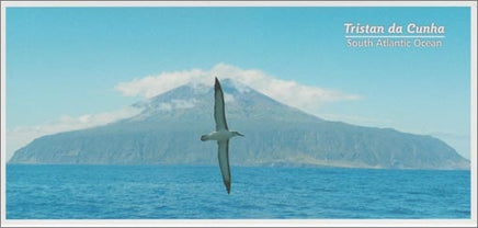 Tristan da Cunha Island and Yellow-nosed Albatross in flight