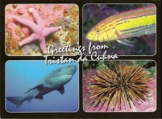 Postcard with four Tristan marine life pictures including the Rockshark.