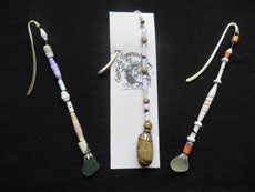 Bookmark made from paper beads, rock or beach glass, and wooden or glass bead 18cm length.